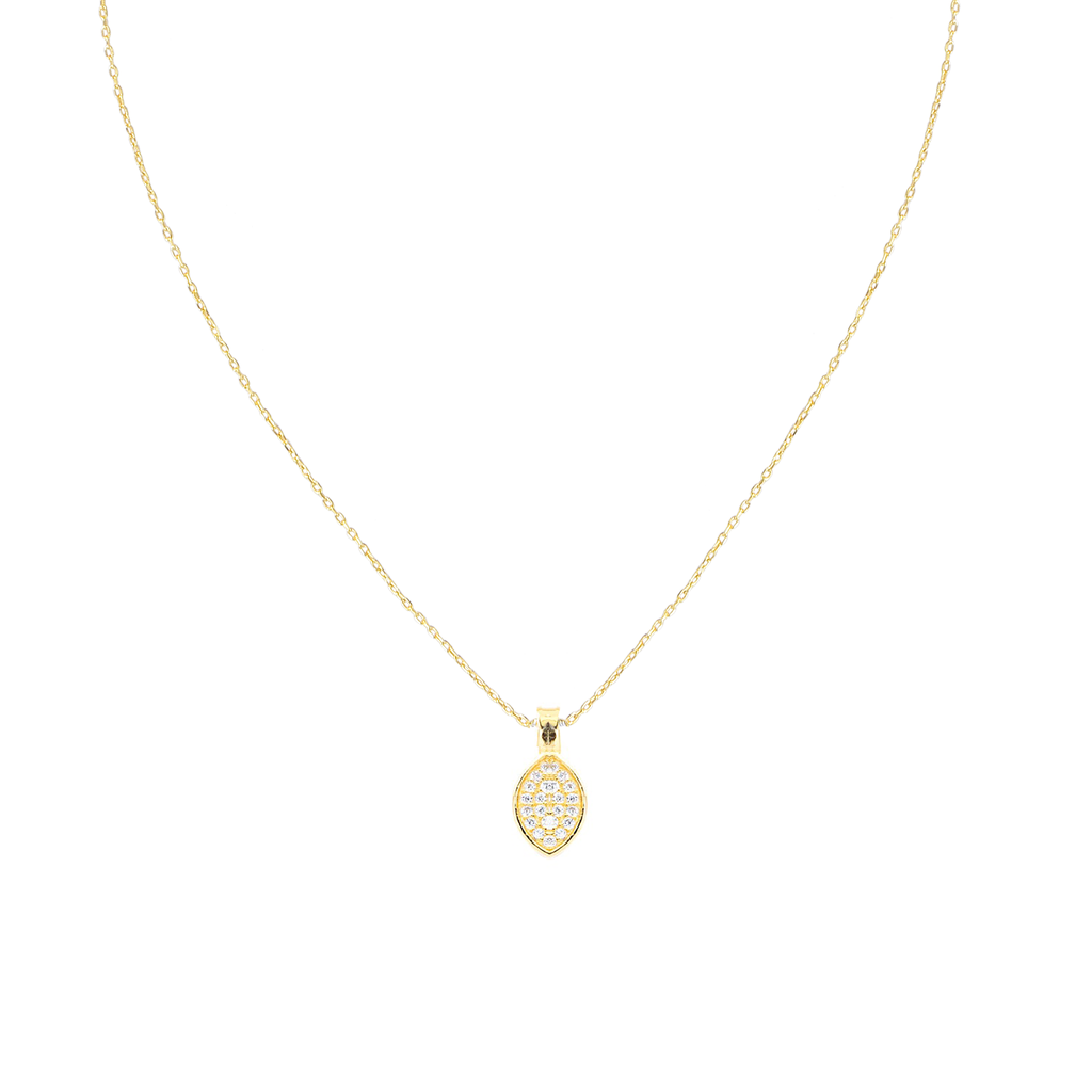 18k gold-plated necklace featuring a sparkling oval-shaped pendant.